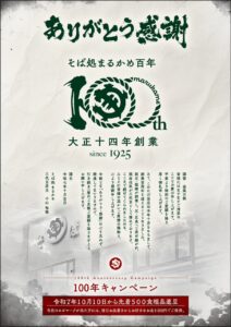 令和7年10月そば処まるかめは、百周年を迎えることができました。これからもご愛顧くださいますようお願い申し上げます。